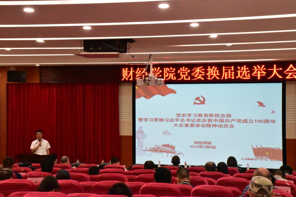 会上,吴松总结了学院上半年党史学习教育工作进展,并动员部署学习习近平总书记在庆祝中国共产党成立100周年大会上重要讲话精神工作。吴松从“成立领导小组”“第一议题”“思政第一课”“志愿活动”“我为师生办实事”“参观红色基地”“拜访革命前辈”等十九个方面进行总结。他表示,财经学院下半年仍将坚定不移围绕“学党史、悟思想、办实事、开新局”的主题,认真贯彻“学史明理、学史增信、学史崇德、学史力行”要求,扎实推进党史学习教育,不断推动学院各项工作发展和创新实践。吴松强调,学习好、宣传好、贯彻好习近平总书记“七一”重要讲话精神,是当前和今后一个时期学院的头等大事和重大政治任务。一是要深刻领会和把握讲话的重大意义,这是新时代中国共产党人不忘初心、牢记使命的政治宣言,是我们党团结带领人民以史为鉴、开创未来的行动指南;二是要深刻领会和把握讲话的丰富内涵与核心要义,特别是要深刻认识全面建成小康社会的伟大成就和历史意义,深入领会把握我党百年奋斗的伟大主题和创造的四个伟大成就,深入领会伟大建党精神的深刻内涵和时代价值,深入领会以史为鉴、开创未来“九个必须”的根本要求,深入领会党对新时代中国青年的要求和期望,深入领会习近平总书记代表党中央发出的伟大号召。