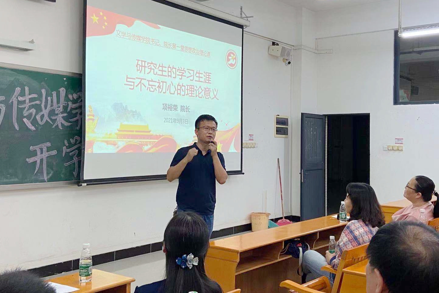 为帮助2021级硕士研究生更好地了解学校,尽早融入新阶段的学习,9月3日,文学与传媒学院在白云校区举行2021级研究生新生开学典礼暨书记院长第一堂思想政治理论课。文传学院领导和导师代表及2021级60多名新生参加学习,典礼由学院副院长林琳主持。