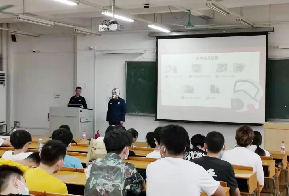为扎实推进学校消防安全宣传教育工作,提高学生消防安全意识和自防自救能力,9月10日,安全保卫处邀请天河消防大队石牌消防站副站长邱洋滨等3名官兵到校为继续教育学院2021级100余名新生开展消防安全知识培训,消防安全知识培训包括理论授课和现场实操等两部门内容。
