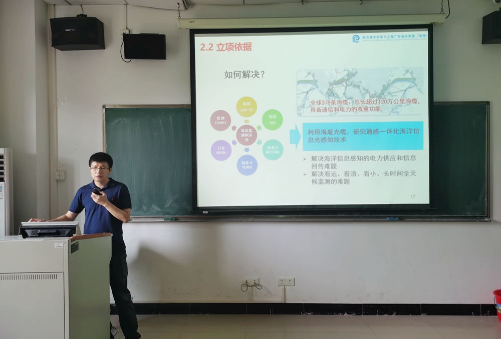 李朝晖介绍了自己的求学经历,鼓励大家开阔视野,脚踏实地,努力钻研。李朝晖结合南方海洋与工程广东省实验室具体项目,从立项依据、研究目标、关键科学技术问题与研究内容、学术思路和标志性成果等方面向与会人员全方位地介绍了如何解决海洋多要素海量信息立体、连续、实时获取及高速传输,以及如何构建海洋信息感知与融合的“通信—感知一体化网络”。李朝晖还从海洋强国的角度出发,鼓励大家从国家的战略和发展角度去研究问题,为国家作出自己应有的贡献。