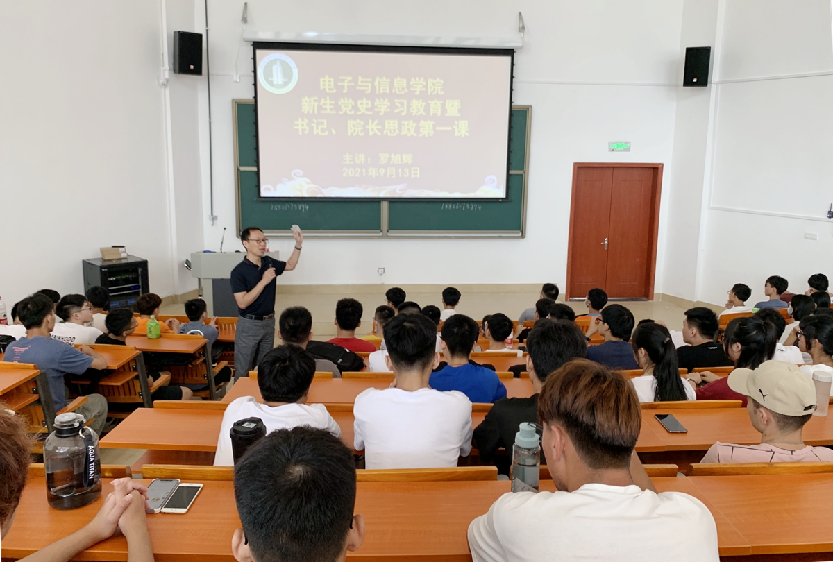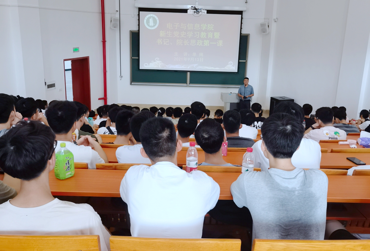 为了尽早让2021级新生适应大学生活,坚定理想信念,9月13日,电子与信息学院党委书记罗旭辉、院长单纯为2021级新同学开展党史学习教育暨思政第一课。
