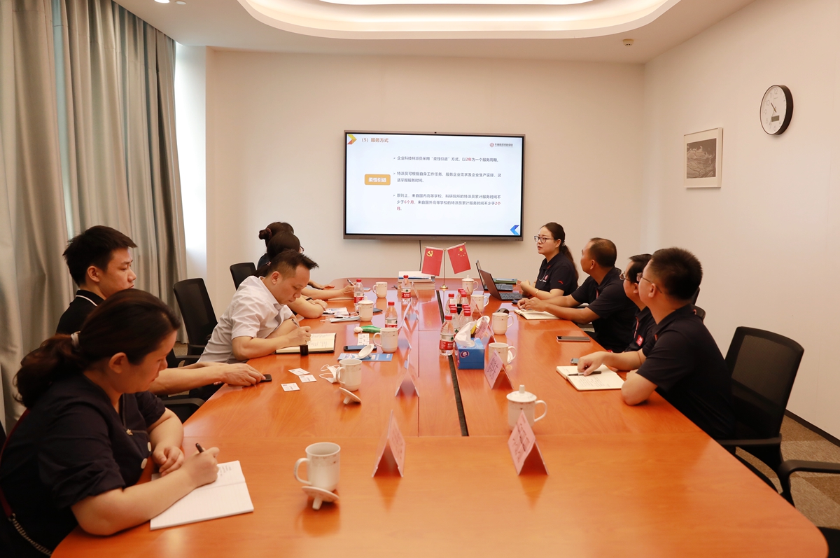 会上,双方就选派“广东省企业科技特派员”工作进行了深入交流,华转中心业务总监全面解读了学校科研工作者参与企业科技特派员工作的重要意义、政策要求和选派流程,并对我校支持科研工作者尤其是青年博士积极参选特派员表示欢迎。最后,双方就科技成果转化、科技管理人才培养等方面洽谈了合作意向。