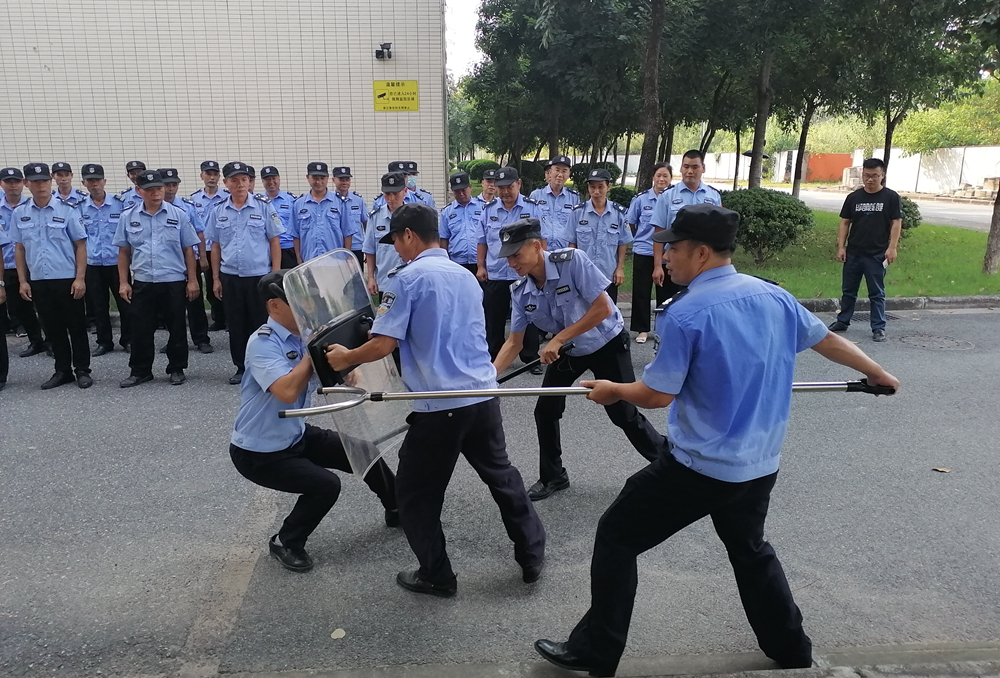 演练前,属地公安民警对校卫队员进行了集中培训,讲述了基本反恐法律法规和防暴安全常识,讲解及示范了防暴钢叉、防暴盾牌等防护器材的使用,并采用分组对抗演练的方式进行实操演练,确保参训人员能初步掌握防护器械的使用方法。随后,现场演练了歹徒持刀劫持人质,由安保人员进行处置和救援的场景。