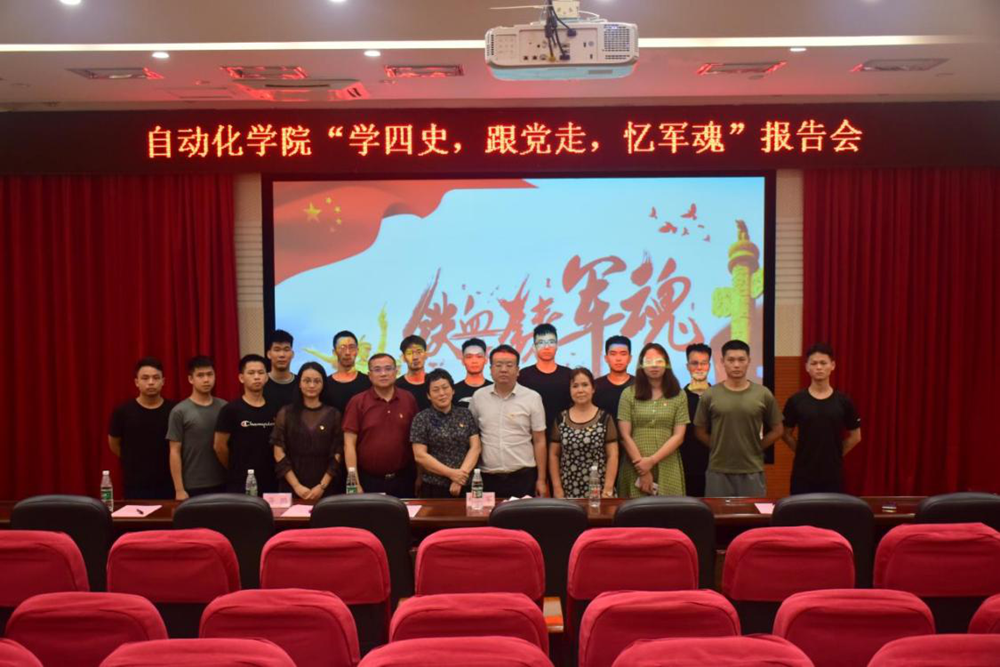 为推进党史学习教育,深入开展“四史”学习活动,挖掘同学们身边的红色资源,9月29日,自动化学院组织优秀退役学生在白云校区三教104报告厅举行“学四史,跟党走,忆军魂”报告会。学校武装部专职副部长全翠珍、自动化学院党委书记杨延军参加报告会。会议由自动化学院党委副书记蒋鹏主持。