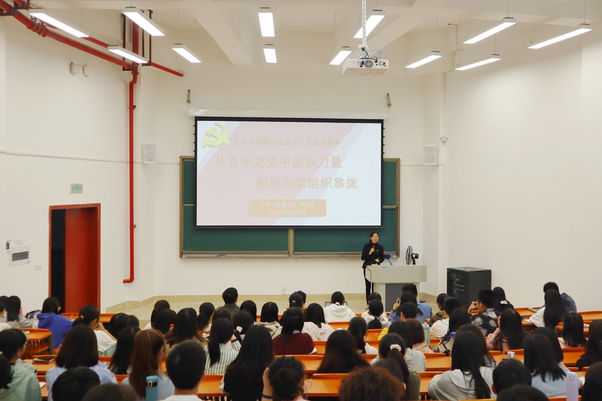 为进一步深入开展党史学习教育,10月21日,文学与传媒学院在河源校区大讲堂104开展了2021级新生入党启蒙教育大会。学院党委书记李双贵,河源校区管委会副主任张宇鹏,学院部分辅导员及21级各班入党积极分子参加了活动。