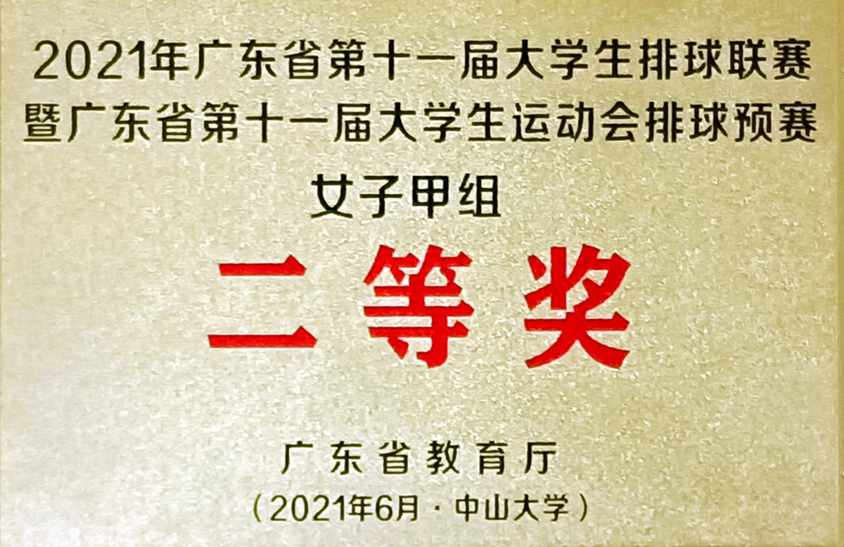 11月7日,由广东省教育厅主办,广东省学生体育艺术联合会为执行单位,中山大学承办的2021年广东省第十一届大学生排球联赛在中山大学体育馆圆满落幕。我校学生排球队在领队、教练员的带领下参加了甲组比赛,其中女子排球队在比赛中奋勇拼搏,勇往直前,荣获二等奖。