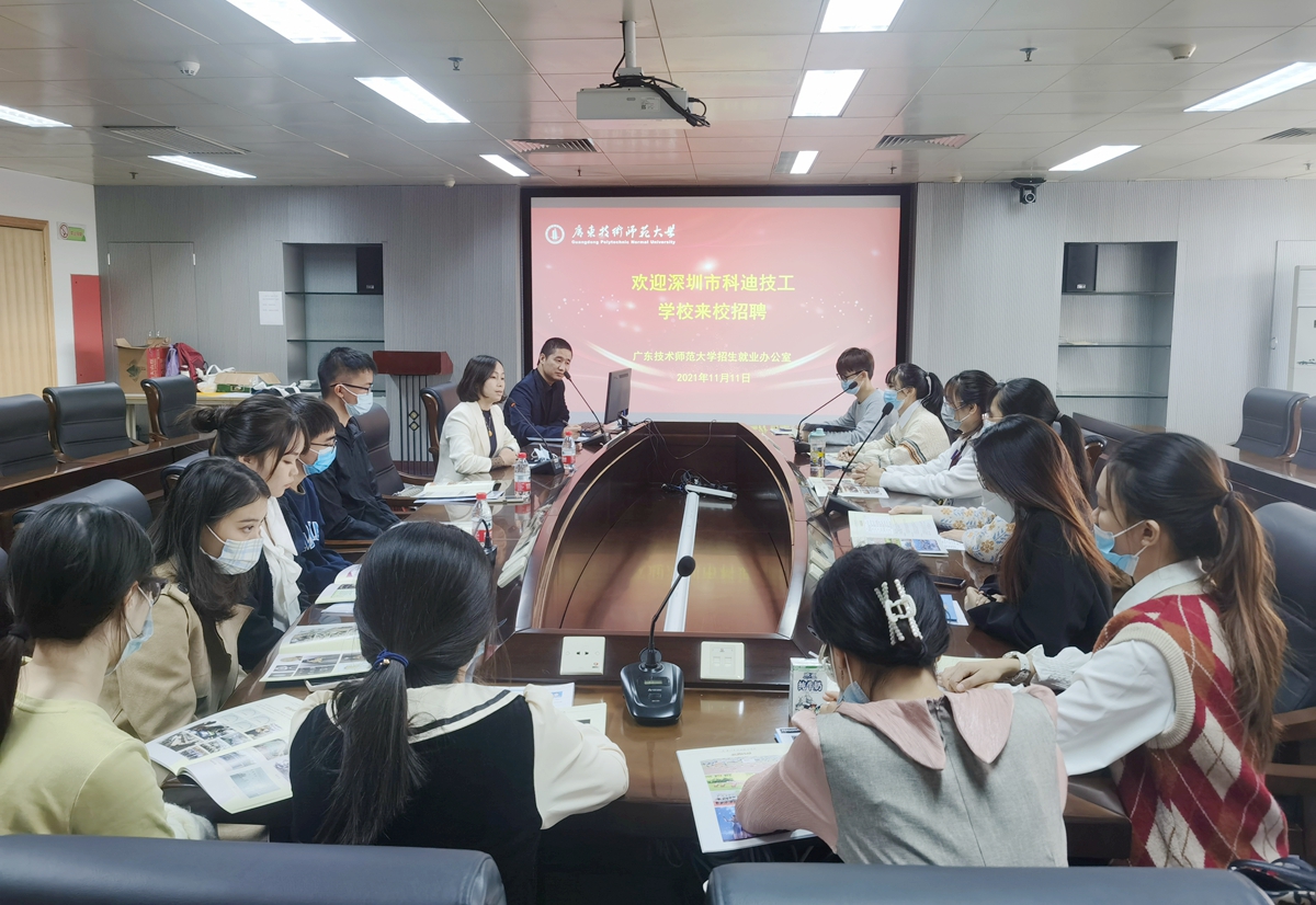 11月11日,深圳市科迪技工学校办学董事会执行董事杨冬娥一行3人来校开展招聘活动,并就见习、实习、就业一体化基地建设等相关合作事宜进行商讨。招生就业办公室、研究生院相关负责人及负责就业工作的相关老师参加了招聘活动。