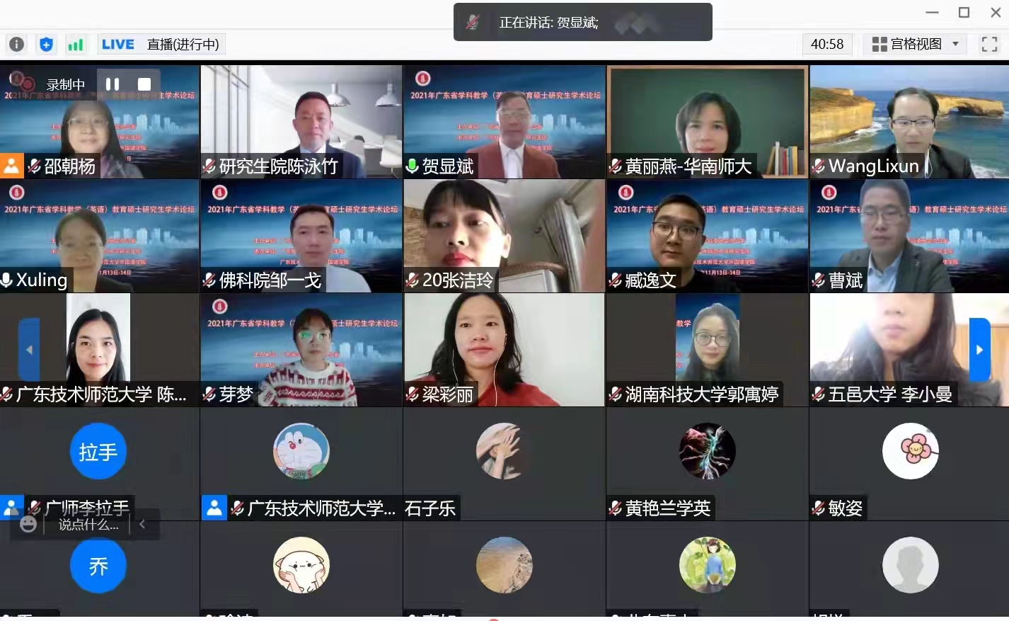 11月13日至14日,由广东省学位委员会办公室主办、广东技术师范大学研究生院和外国语学院承办的2021年广东省学科教学(英语)教育硕士研究生学术论坛顺利举行。论坛采用在线方式,参会者达到了近1000人次。我校研究生院和外国语学院负责人出席了开幕式并致辞。