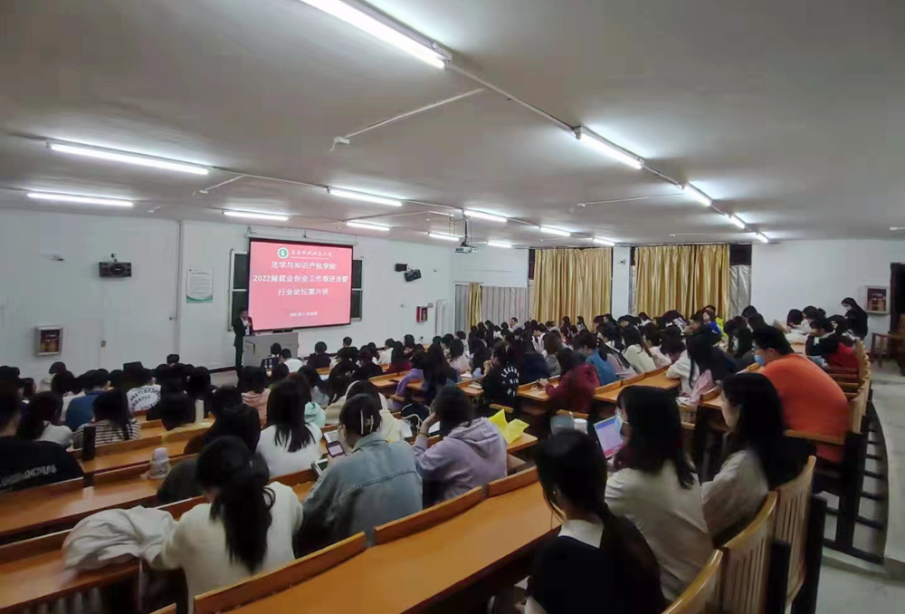 为深入学习贯彻习近平总书记在十九届六中全会上的重要讲话精神和全会精神,进一步落实《2022届全国普通高校毕业生就业创业工作网络视频会议》精神,落实省教育厅及学校关于做好2022届毕业生就业创业工作的具体部署,11月30日至12月2日,法学与知识产权学院在北校区A栋大阶梯教室召开2022届就业创业工作推进会暨行业论坛系列讲座。