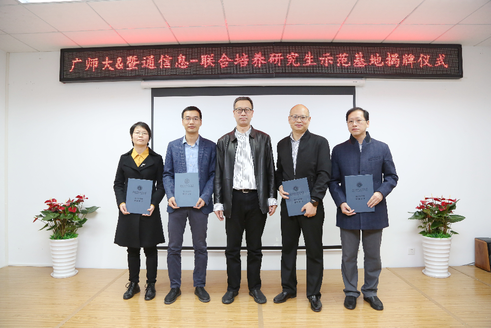 12月23日,我校与广东暨通信息发展有限公司(以下简称“暨通信息”)共建的“广东省联合培养研究生示范基地”在暨通信息正式揭牌,我校研究生院院长陈泳竹、计算机科学学院党委书记罗纪旋、院长赵慧民、副院长陈荣军、基地项目负责人贾西平,广州无线电集团党委委员、副总经理、广电平云资本管理有限公司董事长、广东暨通信息发展有限公司董事长李瑜、总经理张帆、副总经理何坚等公司高管共同出席了揭牌仪式。