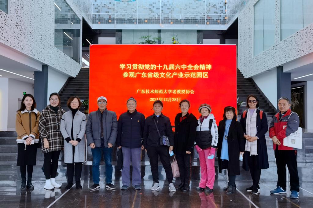 2021年12月28日,学校离退休工作处副处长陈晓霞带领学校老教授协会理事参观考察,活动主题是“学习贯彻党的十九届六中全会精神,参观广东省省级文化产业示范园区”。
