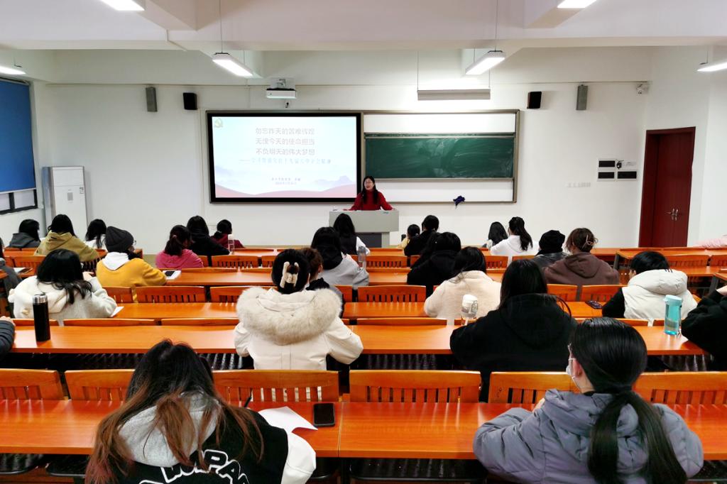 苏敏以《勿忘昨天的苦难辉煌,无愧今天的使命担当,不负明天的伟大梦想》为题,将党的十九届六中全会《决议》的精髓要义凝练为具有内在逻辑关系的知识框架,并用“1-2-3-4-5-10-20”的模块化思维进行概括,将一个根本问题、两个确立、三次理论飞跃、四个历史时期和伟大成就、五大历史意义、十个坚持宝贵经验、二十大继往开来等内容作了系统解读,让在座师生对全会《决议》有了更深层次的理解和学习。讲授过程中,苏敏还结合红色影视作品中的经典场景,生动引导学生深刻认识中国共产党“为中国人民谋幸福,为中华民族谋复兴”的初心使命,教育学生要坚定信念,把牢政治方向;要知行合一,永远跟党走;要践行理想,不负青春不负时代。