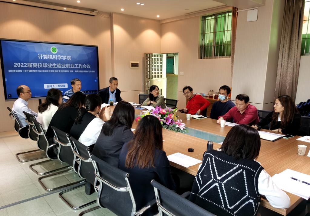 会议深入学习习近平总书记在中央全面深化改革委员会第二十四次会议精神,学习传达广东省和学校关于2022届高校毕业生就业创业工作会议精神,总结2021年工作经验,分析研究当前毕业生就业创业工作面临的形势和问题,全面动员部署计算机科学学院2022年高校毕业生就业创业工作。
