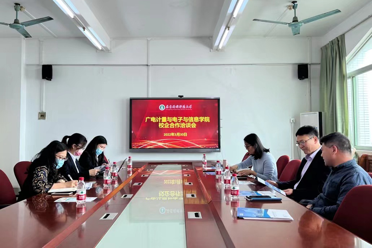 3月30日,广电计量人力资源中心负责人刘玲玲、葛娟等一行3人到访电子与信息学院进行校企合作交流,电子与信息学院院长单纯、副院长柳秀山、副书记梁茵参加了洽谈会。