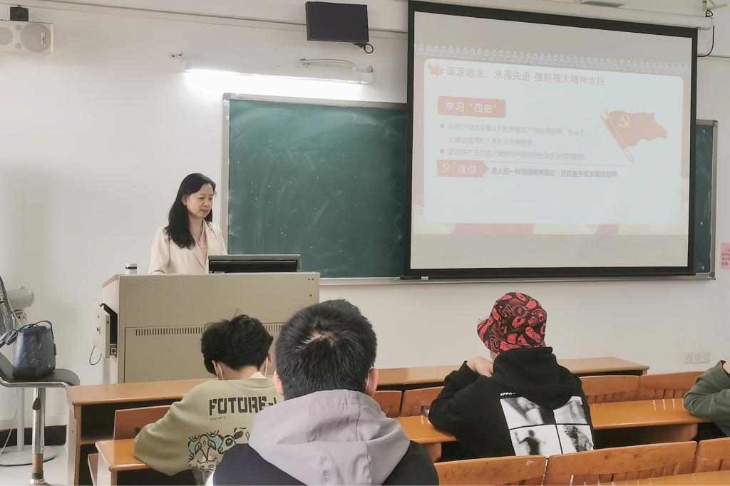 岑健以《学“四史” 明担当 筑梦想》为主题,围绕“坚定信念、永葆先进,撑起强大精神支柱”“实事求是、与时俱进,筑牢思想基石”“百折不挠、勇于纠错,展现高超政治智慧”“牢记宗旨、执政为民,坚守初心矢志不移”四个方面进行了讲授。她指出历史是最好的“教科书”、“营养剂”和“清醒剂”。“四史”是中国共产党宝贵的精神财富,是中国共产党人增强志气、骨气、底气,提升党性修养水平的根本依据和内生动力。“四史”教育为加强大学生修养,寻觅心灵依归,提供信仰之源、力量之泉、修养之本、心学之根。最后,岑健院长强调,大学生要善于在“四史”学习中,看到共产党人如何做到信仰如山、信念如铁、信心如磐,希望同学们能够在“四史”学习中汲取力量,铭记历史,不忘初心、牢记使命,站在第二个百年的起跑线上,为国家和民族复兴贡献一份力量。
