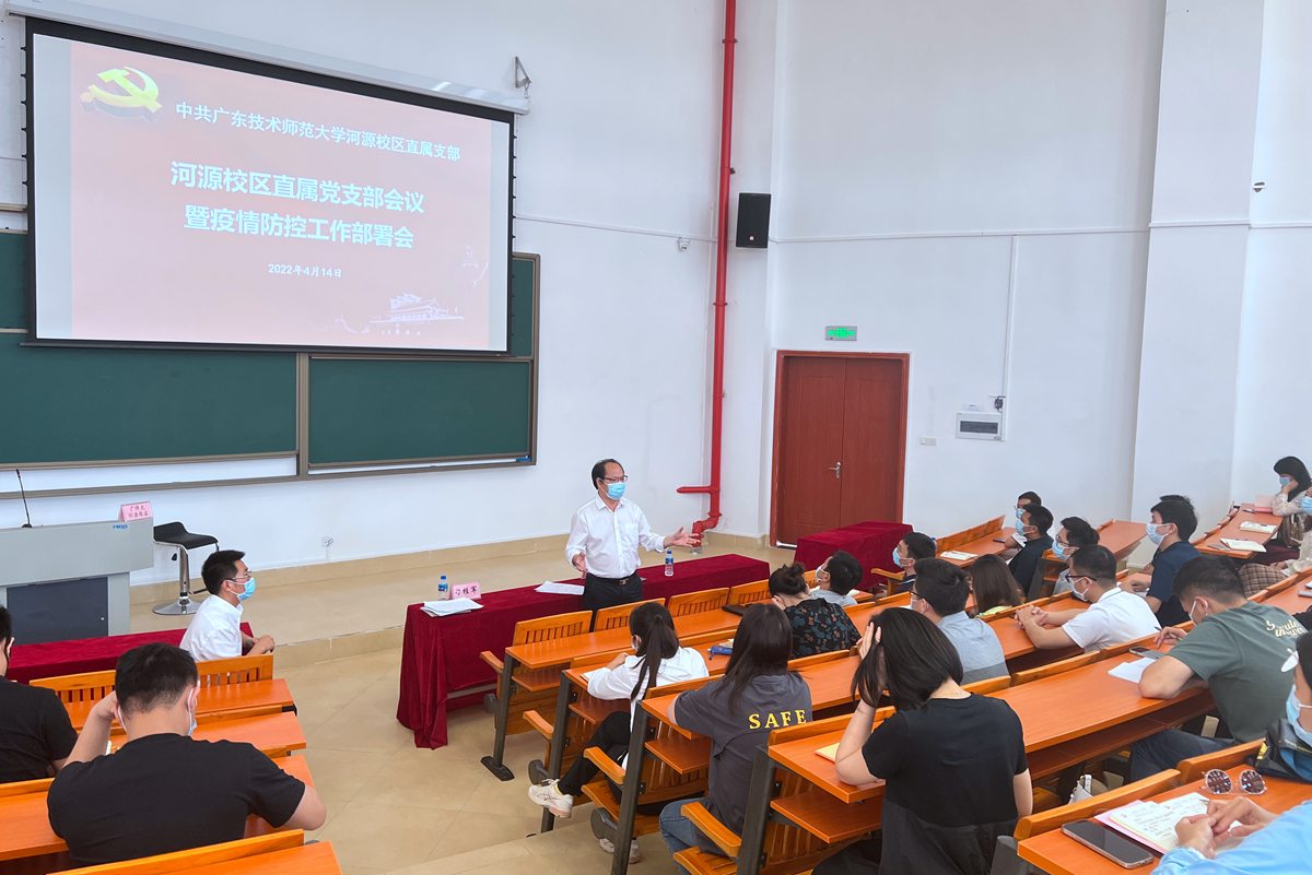 为深入贯彻习近平总书记关于新冠肺炎疫情防控重要指示批示精神,从严从实从细部署做好当前河源校区疫情防控工作,提高科学精准防控水平,4月14日,河源校区直属党支部于大讲堂206召开支部会议暨疫情防控工作部署会,河源校区管委会负责人、全体成员,河源校区直属党支部全体党员及第三方单位负责人出席会议。会议由河源校区直属党支部书记、管委会主任陈作雄主持。