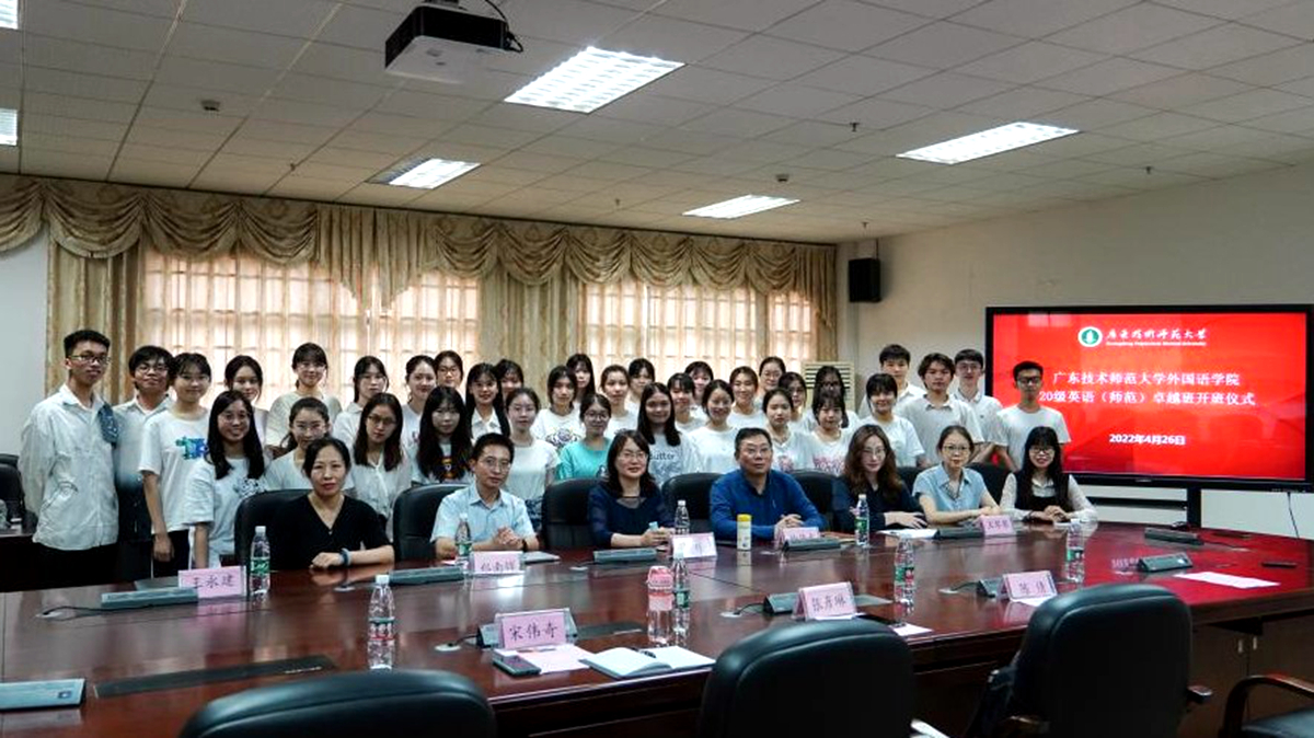 4月26日,外国语学院2020级英语(师范)卓越班开班仪式在白云校区一教234顺利举行。外国语学院领导班子、校内外导师代表、专任教师代表、辅导员、卓越班全体学生出席了本次开班仪式。开班仪式由外国语学院党委副书记、20级英语(师范)卓越班班主任王琴琴主持。