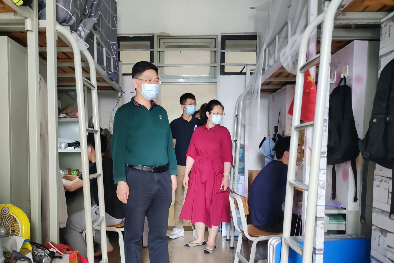 线下,学院领导分别带队走访学生宿舍,一方面检查学生在宿舍听课的状态,另一方面强调疫情管理规定,希望同学们共克时艰,自觉遵守疫情管理各项规定,积极配合做好学校组织的核酸检测工作。对待疫情防控保持平稳心态,不必过度焦虑。在走访过程中,学院领导将今年学院考研的可喜情况与同学们分享,鼓励同学们克服线上上课的种种不便,努力学习,向优秀学长看齐。