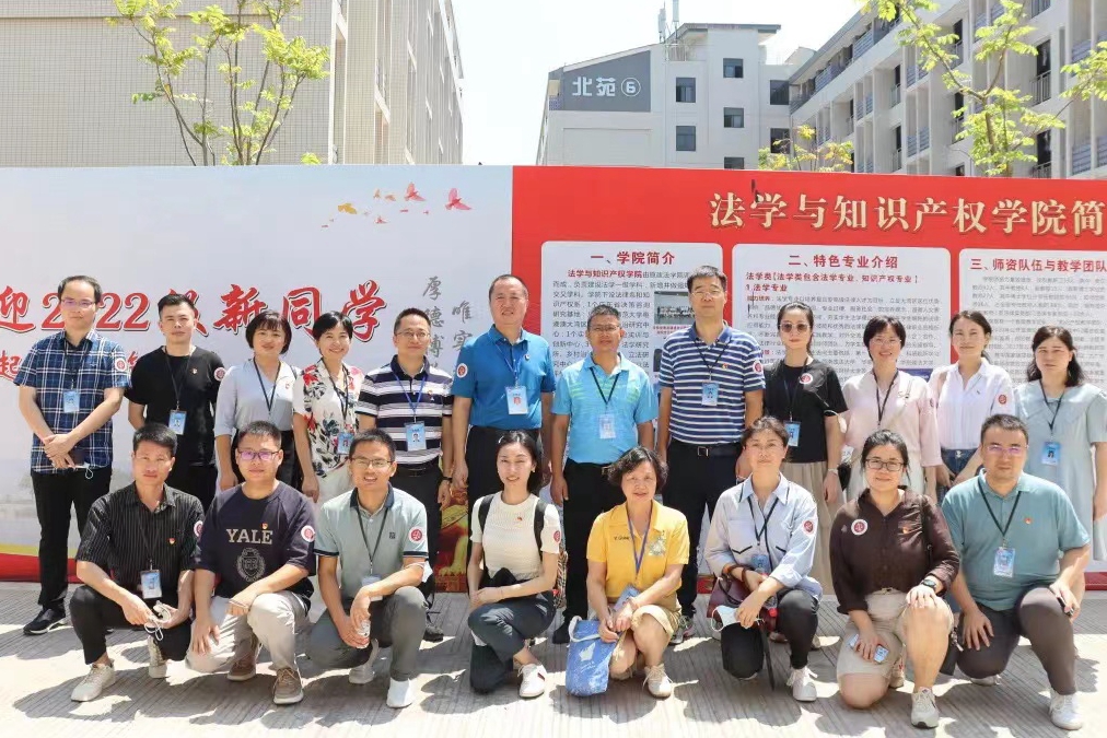 金风送爽迎新生,满怀憧憬开新篇。9月3日,法学与知识产权学院党委书记许建鑫、院长黄俊辉率领班子成员、支部书记、系主任、新生班主任、党政办公室、辅导员和学生志愿者一早到达河源校区迎新大本营,迎接2022级新同学,指引和帮助同学们办理入学手续。