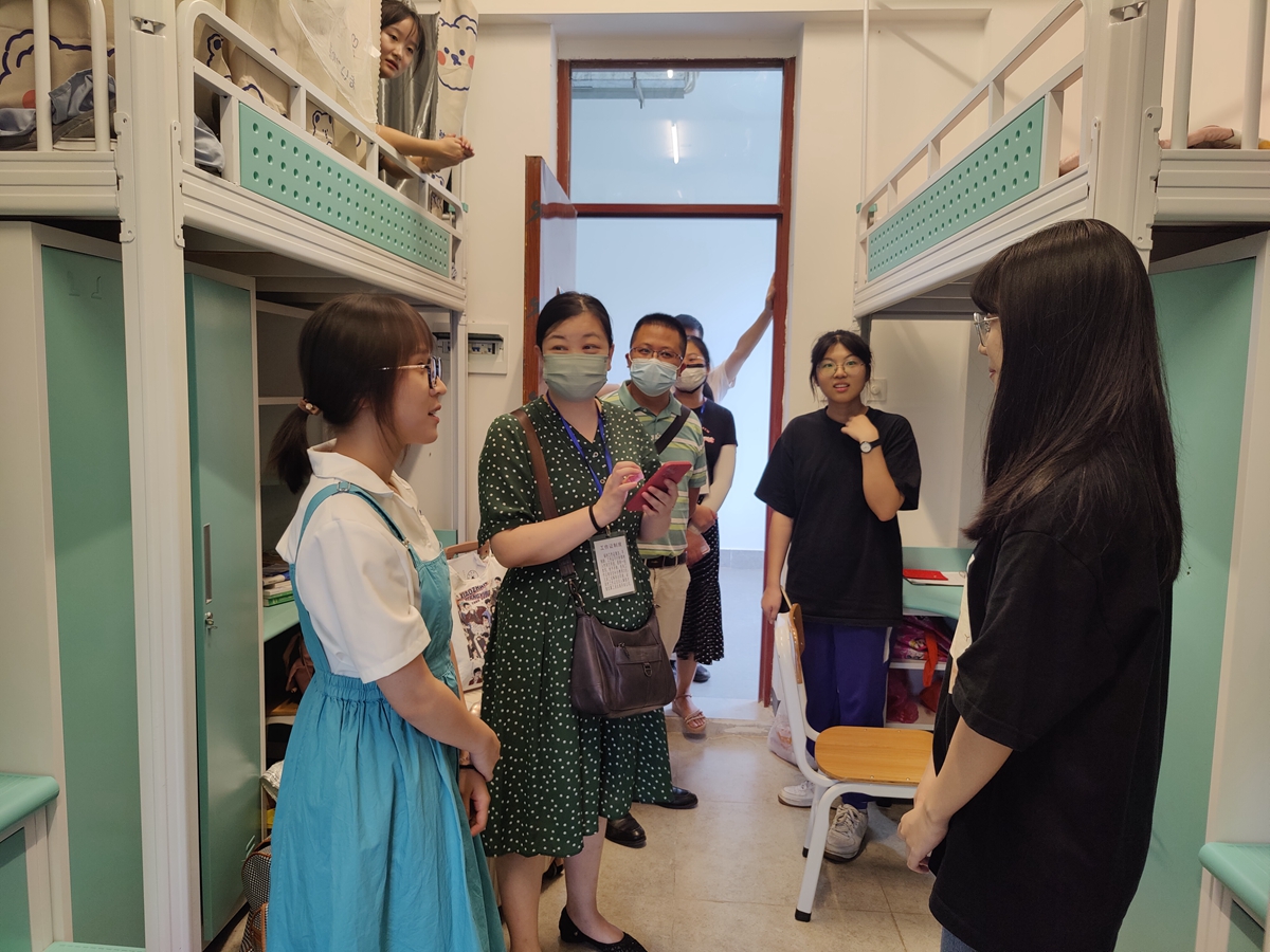 走访宿舍,暖心关怀。学院领导老师走访了新生宿舍,实地了解新生的生活情况,并向同学们送去了亲切的问候。走访过程中,老师们对2022级新生表达了热烈欢迎并与学生进行了亲切交谈,“同学们都从哪里来?”“能适应河源的天气吗?”“河源食堂还吃得习惯吗?”。学院领导老师叮嘱同学们要提高科学防疫的意识,自觉遵守学校疫情防控规定,参加学校组织的核酸检测,共同构筑校园疫情安全防线,并耐心解答同学们对专业分流、转专业等方面的疑惑,希望同学们尽快熟悉校园环境,和舍友融洽友好相处,以乐观的态度和饱满的精神状态投入到新学期的学习和生活中去,做一名优秀的大学新生。