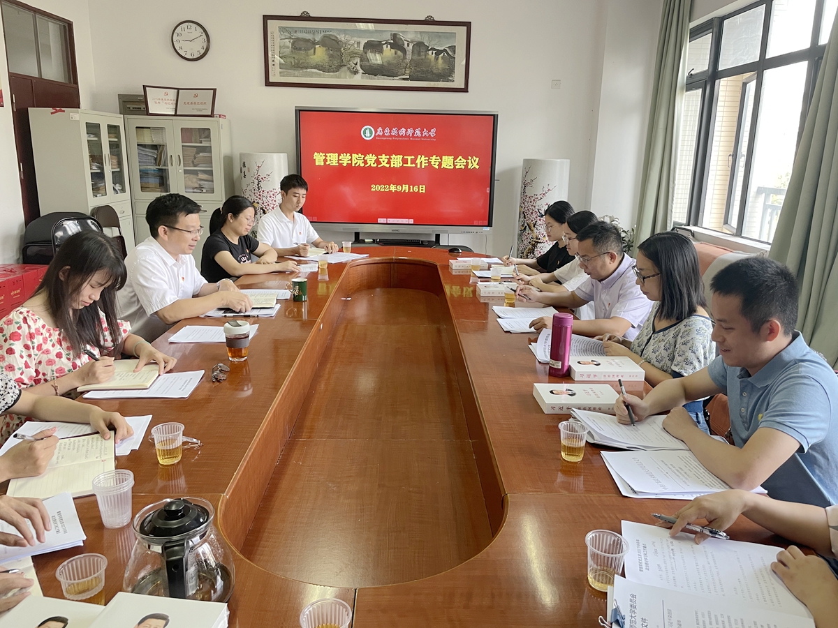 2022年9月16日上午,管理学院在白云校区党员活动室召开党支部书记工作会议,专题部署学习贯彻《习近平谈治国理政》第四卷。会议由学院党委书记陈军主持,全院教工党支部书记和学生党支部书记参加了会议。
