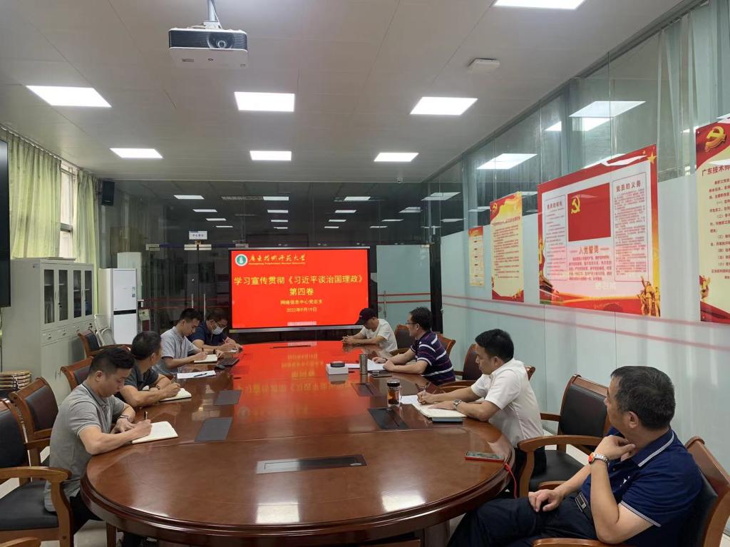 根据《广东技术师范大学学习宣传贯彻<习近平谈治国理政>第四卷工作方案》精神和校党委的统一部署,网络信息中心于9月19日召开《习近平谈治国理政》第四卷学习会,中心党总支书记、主任魏文国主持学习会并做动员讲话,全体党员参加会议。