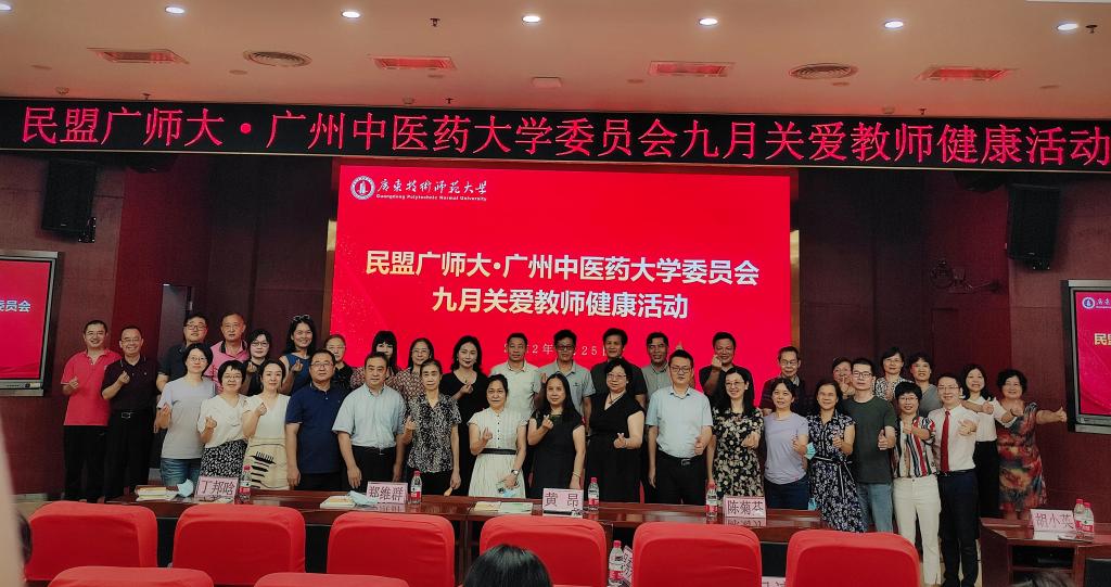 9月25日,民盟学校委员会与民盟广州中医药大学委员会在东校区举办“九月关爱教师健康”活动,广州中医药大学17位专家教授前来我校义诊,开展健康知识讲座和急救技能培训。学校统战部长黄昂、广州中医药大学统战部长郑维群和民盟省委二级调研员黄慧出席活动。