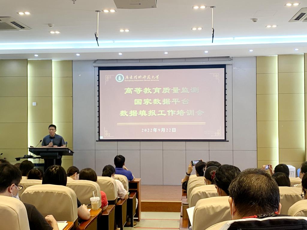根据《关于做好“高等教育质量监测国家数据平台”2022年监测数据填报工作的通知》(国教督办函〔2022〕29号)文件精神,为按时完成2022年本科教学基本状态数据采集与填报工作,9月22日下午,我校召开高等教育质量监测国家数据平台数据填报工作培训会,正式启动高等教育质量监测数据填报工作。教务处负责人,相关职能部门负责人及数据填报员,各教学单位分管教学副院长、本科专业负责人及数据填报人员等100余人参会。