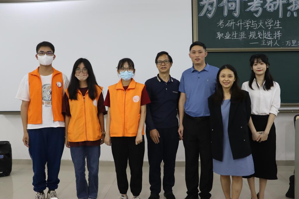 万里洪就大学生职业生涯规划的理念原则、考研升学规划、当前考研情况与形势、考研过程中的环节与重点、研究生考试备考注意事项等进行了详细的讲解。针对同学们所关心的广东技术师范大学马克思主义学院硕士点招生及培养情况,万里洪也作了详细的介绍。在提问环节中,万里洪还就同学们所感兴趣的相关问题作了一一解答。