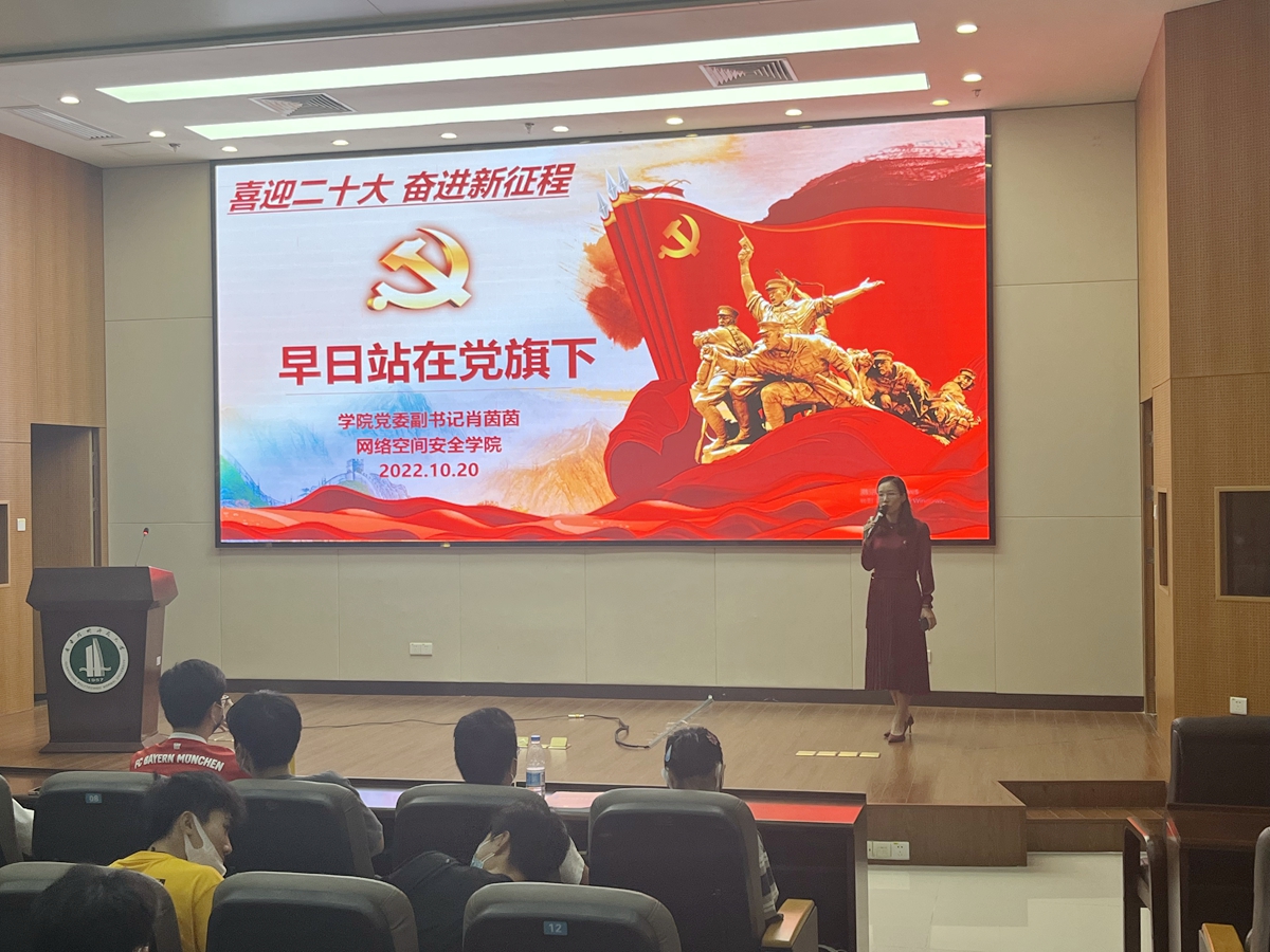 为进一步加强新生对中国共产党的认识、提高思想觉悟、端正入党动机,10月20日,网络空间安全学院在西校区实训楼报告厅面向2022级新生开展入党启蒙教育。