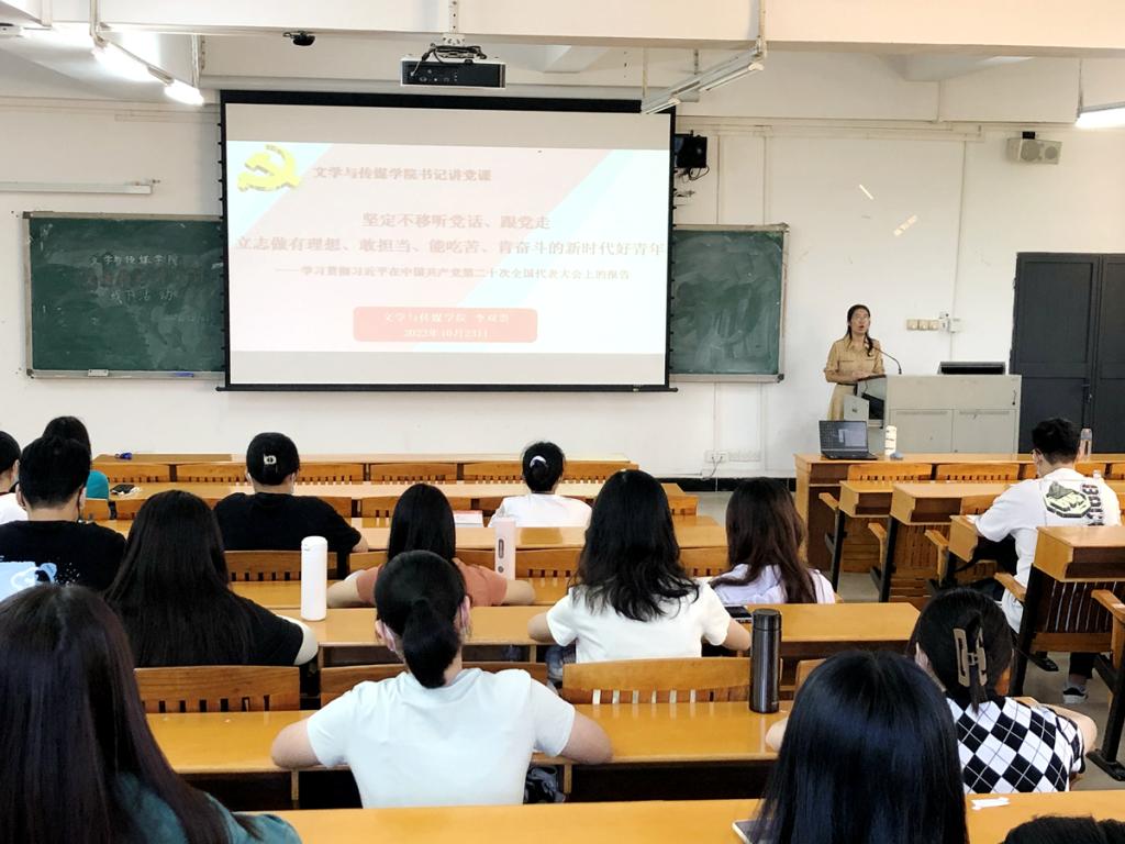 为深入学习贯彻党的二十大精神,进一步引导入党积极分子准确把握党的二十大报告的重大意义,提高思想高度,端正入党动机,在落实“戴口罩,隔空坐”防疫政策的前提下,近日,文学与传媒学院党委书记李双贵于白云校区三教201为入党积极分子讲授专题党课。