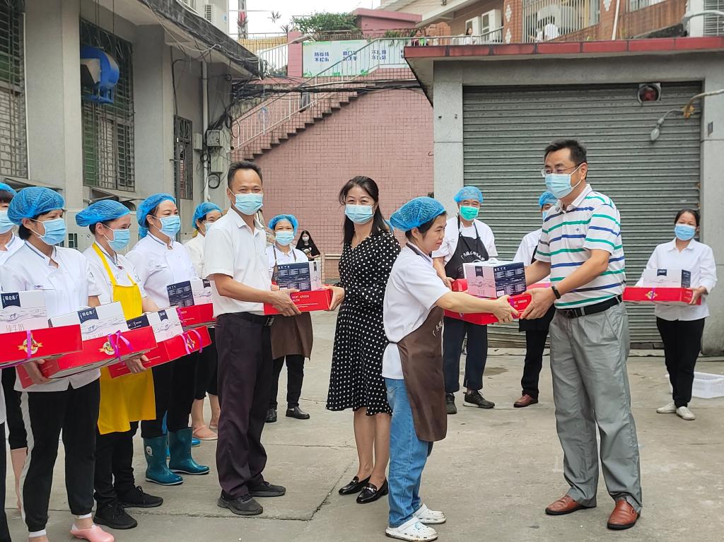 11月15日下午,受学校领导委托,后勤处有关负责同志到广州校区后勤各部门开展慰问活动,向在疫情防控期间坚守岗位,做好校园后勤服务保障工作的基层一线员工送去关怀与温暖。