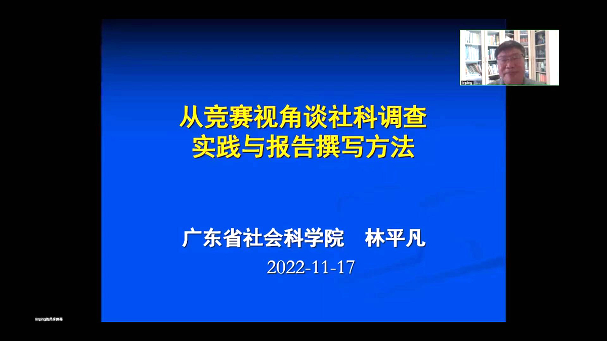 为学习宣传贯彻党的二十大精神,引领广大青年大学生积极投身科技创新实践,11月17日,校团委举办大学生科技创新“攀登大讲堂”,邀请广东省社会科学院原企业研究所所长林平凡教授为我校师生作专题报告。本次讲座以线上形式开展,吸引了广州校区、河源校区1000余名学生参与观看。