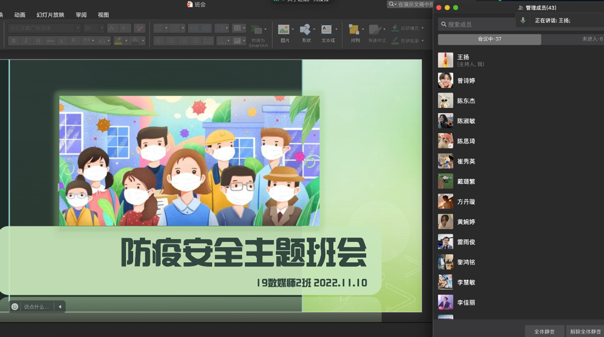 全面宣传,提高防范意识。教育科学与技术学院通过开展疫情防控线上主题班会,教育引导学生积极配合学校做好各项防控措施,自觉遵守管理规定,提升自我防控意识和能力。真正发挥班主任第一导师作用,结合党的二十大理论宣讲,解读国务院联防联控机制《关于进一步优化新冠肺炎疫情防控措施科学精准做好防疫工作的通知》和学校出台的疫情防控工作方案、学生行为规范等文件要求,充分认识优化调整防控措施不是放松防控,更不是放开、“躺平”,增强学生对防疫政策的理解,提高学生的自我约束能力。同时,运用新媒体网络服务功能,持续做好防火、防诈骗教育宣传,筑牢疫情防控和平安校园“双重防线”。