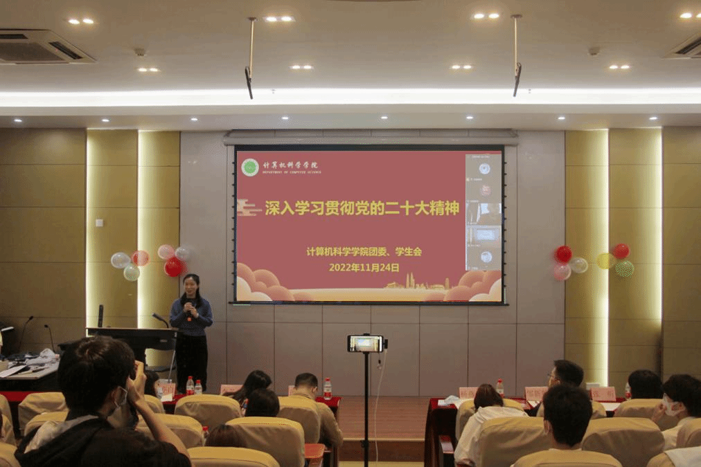 11月24日,计算机科学学院在东校区一教209组织团学干部学习党的二十大精神会议,采用线上线下相结合的方式。学院党委副书记杨燕佳、关工委委员唐晓辛、全体辅导员出席活动,东校区及河源校区全体团学干部参加座谈会。