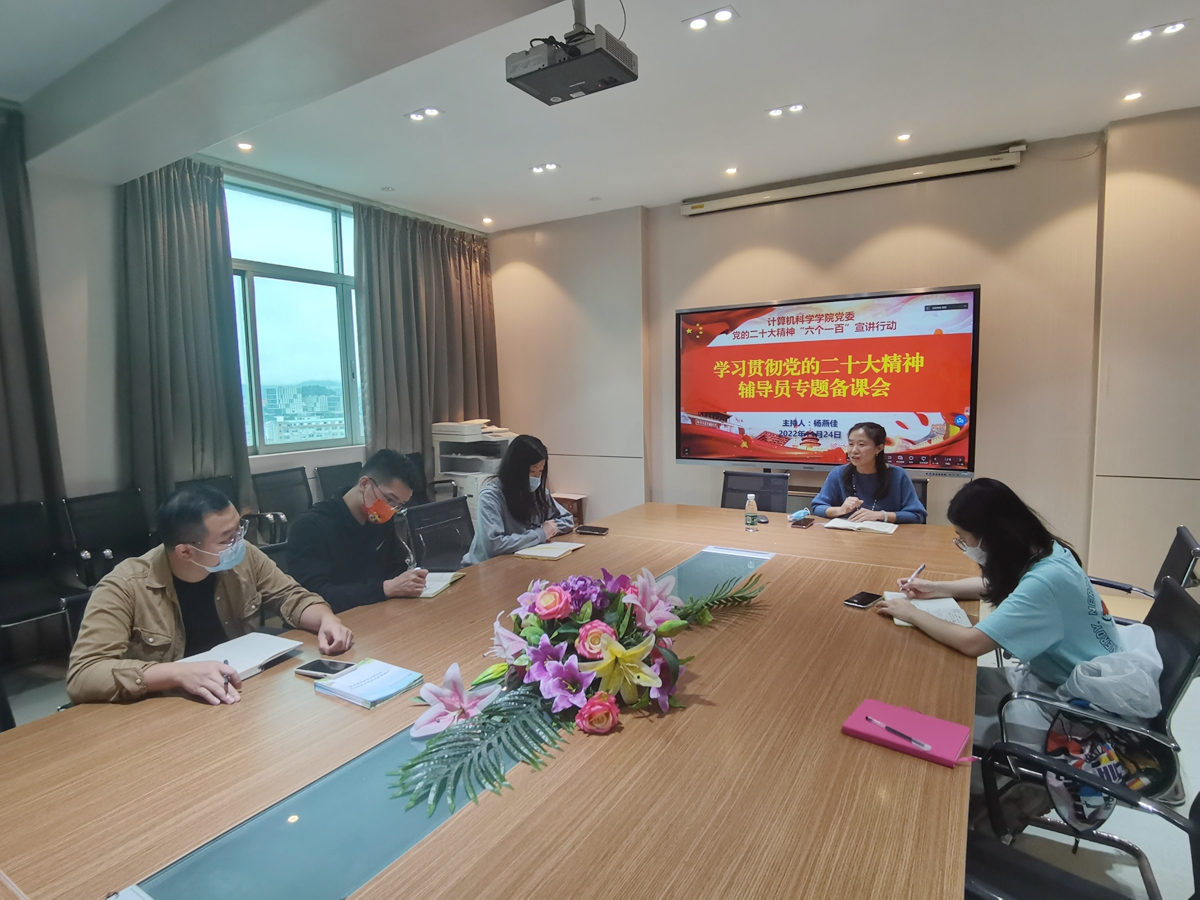 为深入学习贯彻党的二十大精神,增强辅导员宣传党的二十大精神的本领,打造高质量的宣传教育活动,11月24日,计算机科学学院在一教1212会议室举办党的二十大精神专题讲座暨辅导员集体备课会,会议由学院党委副书记杨燕佳主持,邀请马克思主义学院邓凯文副教授为学院全体辅导员作辅导。