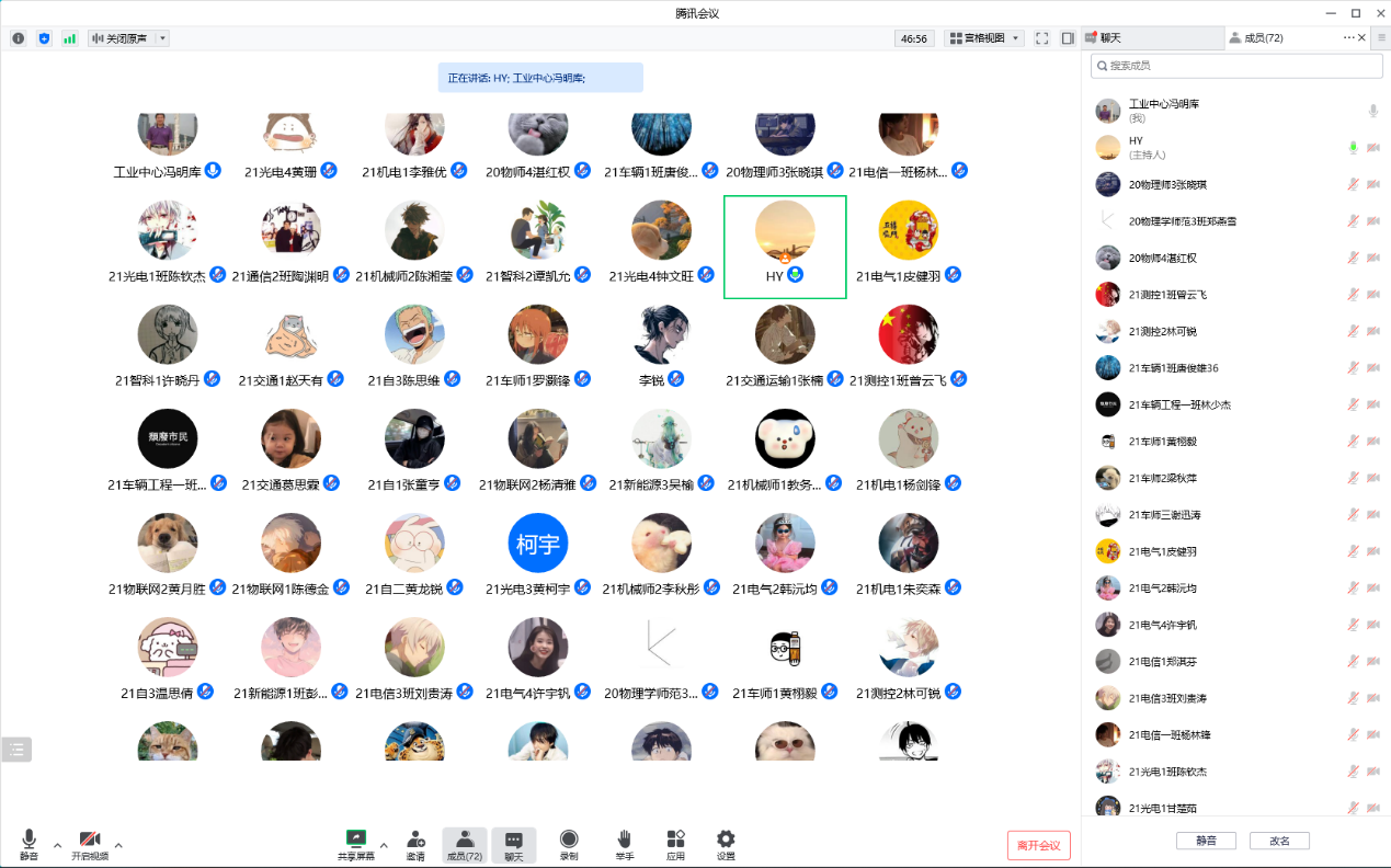 会上,各教学班参会学生针对本学期线下线上教学情况积极发言,内容涉及课程学时安排、教师授课进度和习题布置、线上仿真实验示范、学生学风等问题。黄涌对部分学生代表提出的问题现场给与答复和建议。与会学生代表还就加强师生线上教学互动活跃课堂气氛以及录课等问题提出合理化建议。