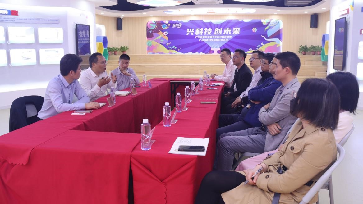 随后,双方举行了座谈会。会上,学院一行认真听取双减政策实施后广州密码营地信息科技有限公司的发展思路、建设历程、基地建设特色、荣誉资质等情况,了解到广州密码营地信息科技有限公司在中小学C++编程、Python编程、图形化课程培训以及配套课程资源开发、青少年编程领域重要赛事(蓝桥杯、CSP_J/S)、科普基地建设的累累硕果。最后,张旭日书记和熊华军院长就接下来校企双方在中小学编程教学考证培训、中高职编程培训课程开发贯通、中小信息技术创客教育资源开发、科普师资培养、科普基地合作、校企实习岗位建设等方面进行了深入的交流。