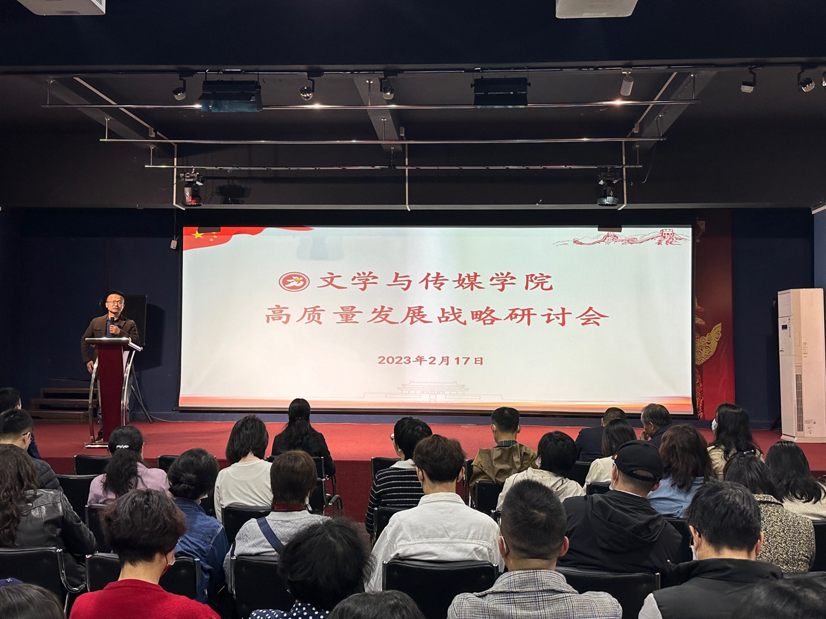 为进一步深入学习党的二十大精神,贯彻落实学校党委书记凌靖波、校长戴青云在学校第二期高质量发展战略研讨会上作出的工作部署和要求,2月17日,文学与传媒学院在东校区郭小东文学馆召开新学期高质量发展战略研讨会,全面梳理学院的优势与短板,研讨2023年学院重点工作。文学与传媒学院全体教职工参加了此次会议。
