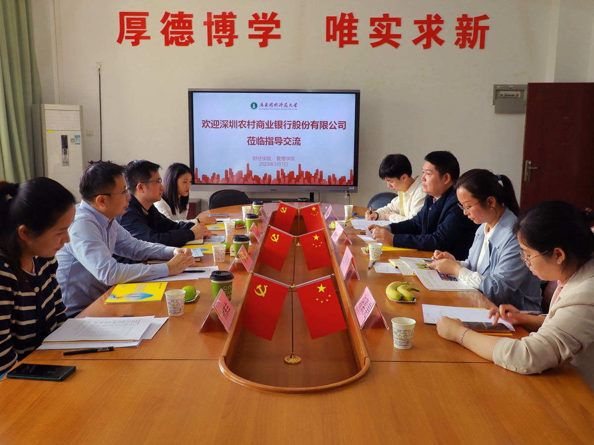 为深入贯彻落实党中央、国务院关于促进高校毕业生就业创业的决策部署,扎实做好2023届毕业生就业工作,进一步深化产教融合、校企合作,3月7日,财经学院、管理学院与深圳农商银行在白云校区第一教学楼412会议室举行就业洽谈会。财经学院党委副书记黄伟文、管理学院党委副书记王婷婷,辅导员许素美、吴士杰和2023届部分毕业生参加会议,深圳农商银行招聘团队参与本次活动。
