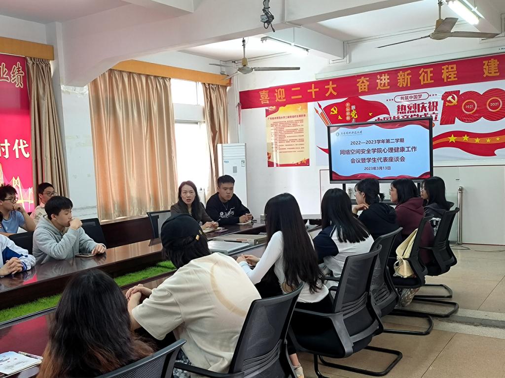 为深入落实立德树人根本任务,全面了解学生返校后心理健康状况,加强对心理重点关注群体的摸查与疏导,防范心理危机事件的发生,营造积极、稳定的校园氛围,促进同学们思想道德素质和心理健康成长,3月13日上午,网络空间安全学院在西校区综合楼405会议室召开了网络空间安全学院心理健康工作会议暨学生代表座谈会。网络空间安全学院党委副书记肖茵茵、辅导员姜云鹏及各班学生代表参加了本次会议。