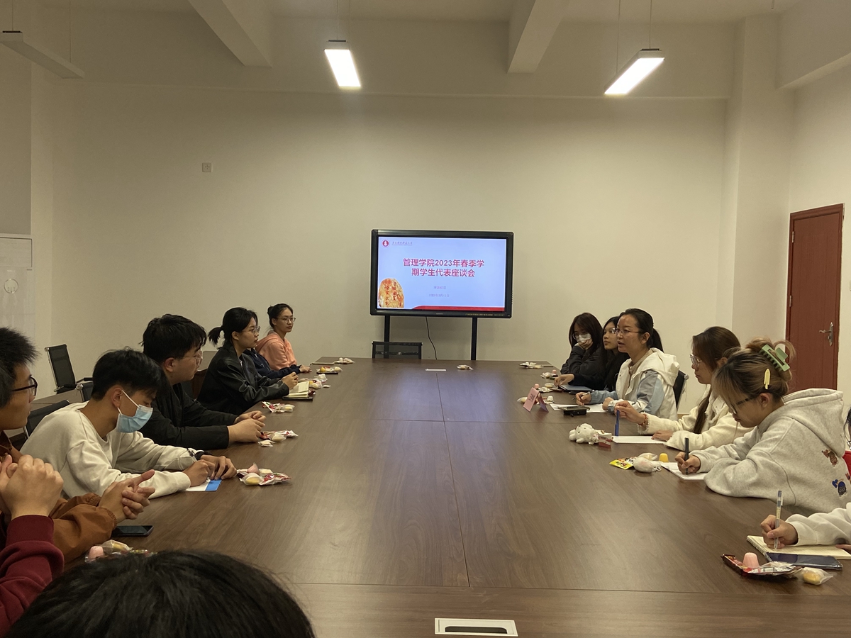 为落实立德树人的根本任务,进一步了解2022级学生的思想动态、实际需求,积极构建学生和学院交流沟通的平台,3月13日,管理学院在河源校区求新楼611会议室召开2023年春季学期学生代表座谈会。学院党委副书记王婷婷,辅导员唐文林以及18名学生代表参加了座谈会。