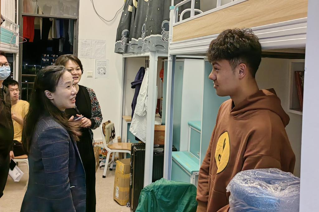 一是走进学生课堂,新学期伊始,学院党委副书记杨燕佳带领全体政工干部深入广州校区以及河源校区各年级学生课堂,详细了解了各班学风状况,敦促各班以学风建设为核心加强班级高质量建设。二是走进学生食堂,通过与学生共进午餐,了解学生的生活情况,倡导学生形成健康的饮食习惯与消费习惯;同时将学生反馈的饭堂建议及时向相关部门反馈,共同致力于提升学生幸福感。三是走进学生宿舍,学院党委副书记杨燕佳走进河源校区少数民族学生宿舍,勉励各民族同学在学习与生活中互帮互助,共同营造健康向上、团结友爱的宿舍氛围。各毕业班班主任走进毕业生宿舍,详细了解学生求职过程中遇到的困难与问题,为学生送上对策。四是走进运动场,与学生开展乒乓球、羽毛球师生友谊赛,身体力行鼓励他们走下网络,强身健体,培养健康的兴趣爱好。五是走进学生家庭,寒假期间,学院开展了暖冬家访活动,辅导员迪娜走进新疆乌鲁木齐市维吾尔族学生哈斯耶提同学的家中,辅导员李芷君走进茂名市联合培养学生陈丽静同学的家中等等,倾听了家长心声,与家长进行了深入沟通,表达了慰问与关心,传递了关怀和温暖。