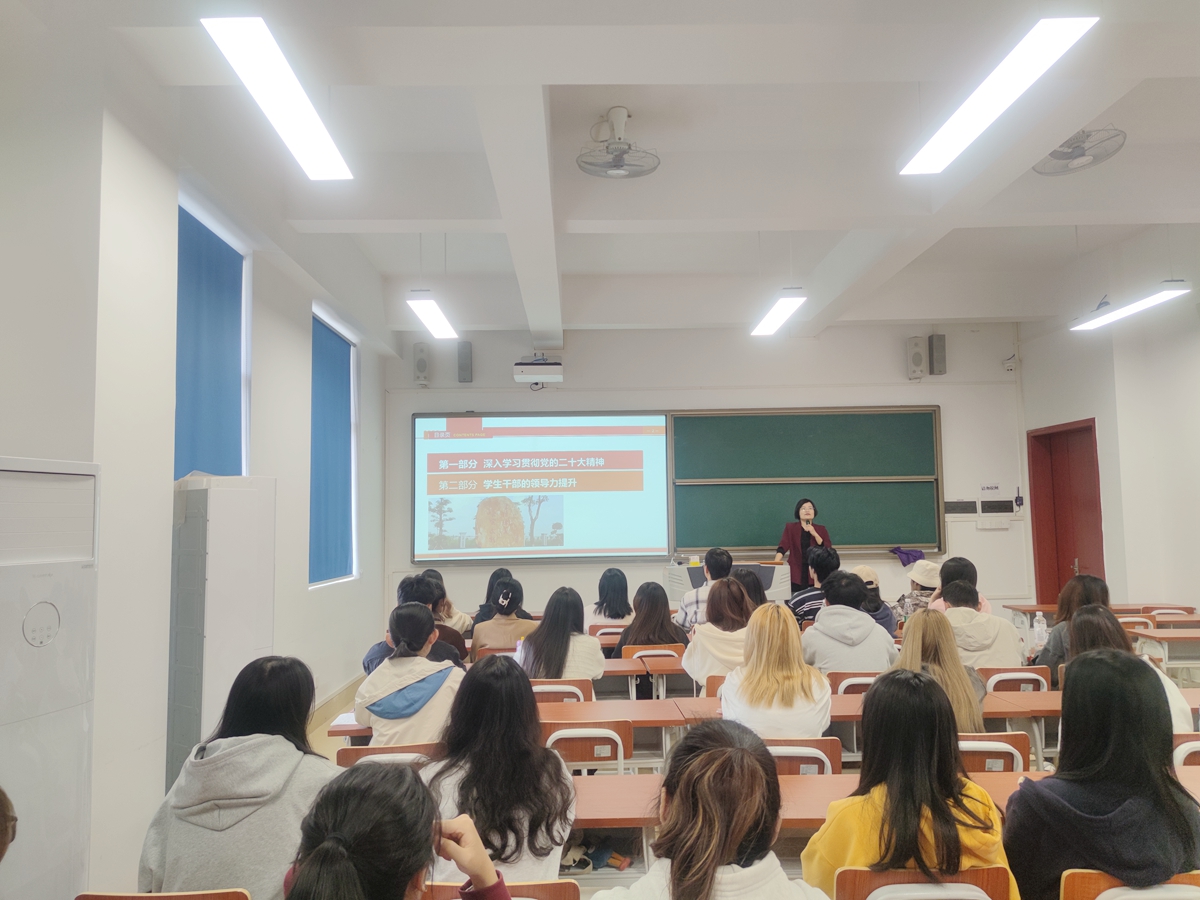 王明粤以《深入学习贯彻党的二十大精神——学生干部能力提升》为题授课,与在场师生共同学习了党的二十大精神,从金句中提炼党的二十大精神对广大师生的重要启示。讲座内容从坚守文化立场、提炼中华文明精神标识和文化精髓,加快构建中国话语体系和中国叙事体系,到讲好中国故事、传播好中国声音,展现可信、可爱、可敬的中国形象,鼓励美院学子结合专业所学,勇于担当弘扬中华传统文化之重任。此次培训通过真实的案例和详实的数据,结合班团一体化的发展现状,指出做好班级管理工作的核心是领导者本身要有德、有素质和有影响力。课上用“鲦鱼效应”和“激励艺术”生动阐释了领导力的重要作用,分析了“00后”班干部领导班集体的疑难问题,并给出了解决方案。